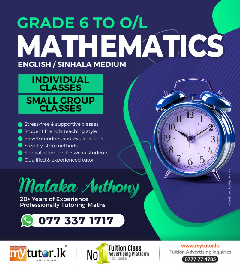 As a teacher my concern is students' results and their knowledge. I expect to give my best to the students and see them as my responsibility. I am very patient and kind with my students. I prioritize personalized learning by adapting my teaching approach to suit your individual learning style and goals. conducted by both English and Sinhala Languages - Special teaching methods - Special attention for weak students - Starting from basic level - Monthly progress report Home visit & small Group Classes around