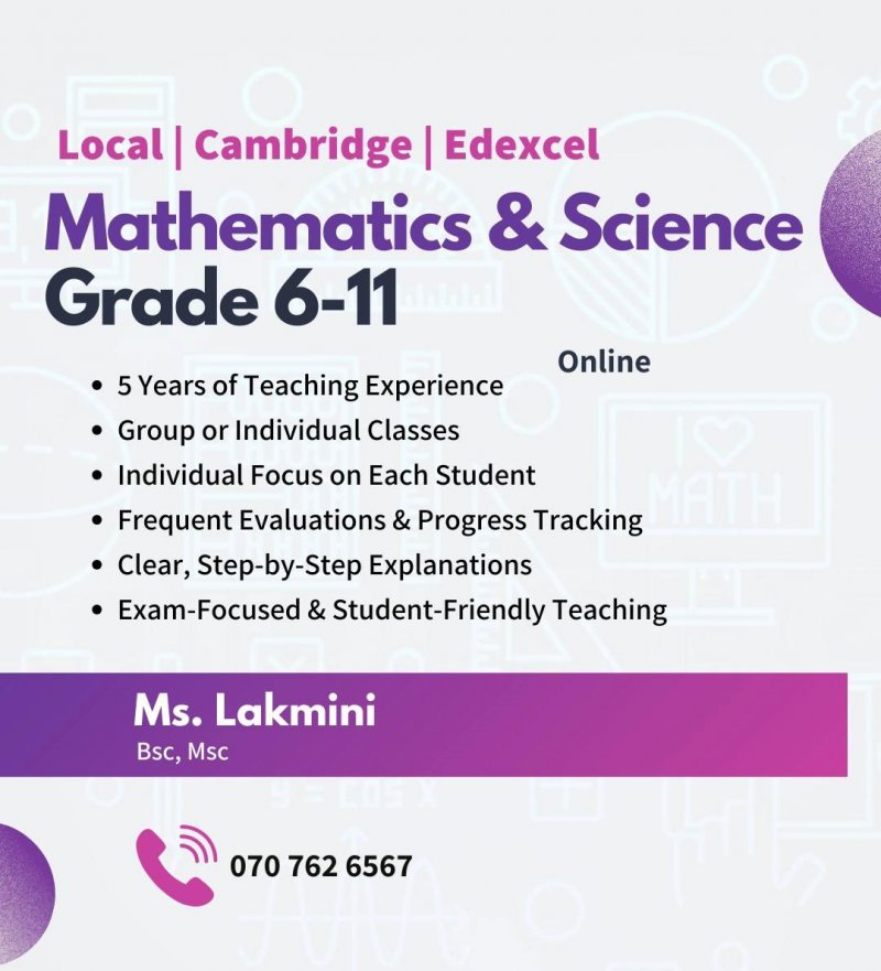 I have a strong higher educational background in Mathematics, with over 5 years of experience that enables me to teach concepts clearly, logically, and step-by-step. My background helps students develop strong problem-solving skills, analytical thinking, and exam confidence. My teaching style includes: • 5 Years of Teaching Experience • Group or Individual Classes • Individual Focus on Each Student • Frequent Evaluations & Progress Tracking • Clear, Step-by-Step Explanations • Exam-Focused & Student-Friendly Teaching