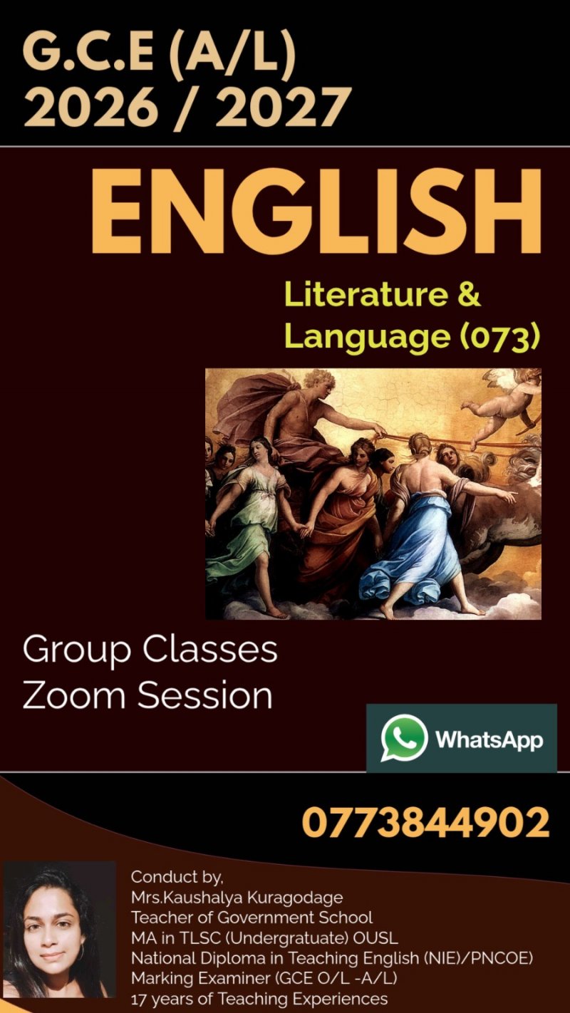 Classes for English Literature - GCE (O/L) (A/L)