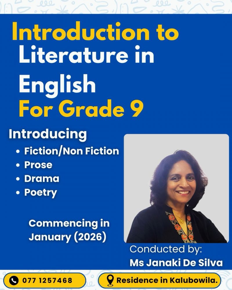 Expert and individualized coaching from Govt. trained English Graduate Teacher (B.A. in English- University of Peradeniya, PgDip. in TESL- University of Colombo). Former Marking Examiner- GCE O/L English Language and Literature. Former Head- English Medium section, at two leading government schools in Colombo. Small group classes conducted at SEHAS INSTITUTE, Pita Kotte. Customized online classes (individual and small group) can also be arranged at convenient times upon request.