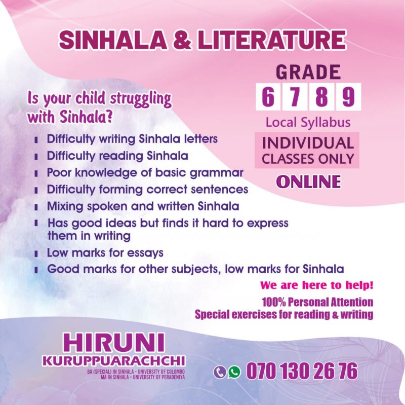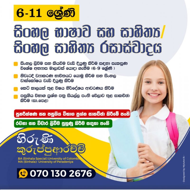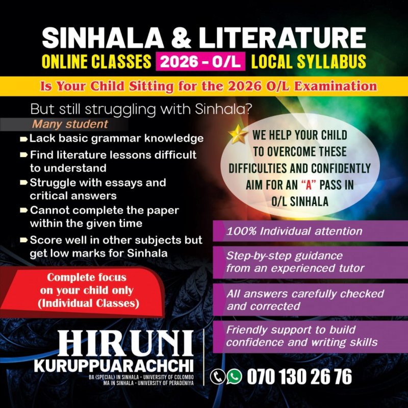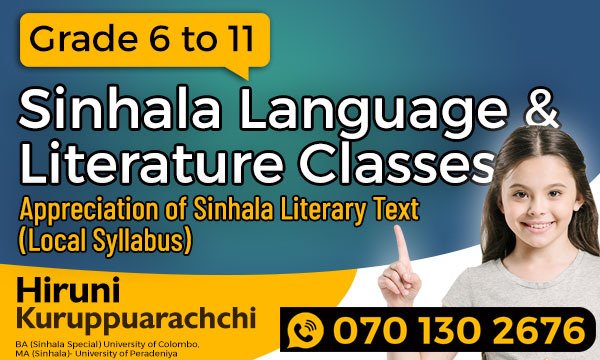Working Experience Assistant Language Instructor (Sinhala)- University of Peradeniya Assistant Lecturer -Department of Sinhala, University of Ruhuna We are especially concerned with improving the writing, reading abilities, and grammar knowledge of grade 6 to 9 students. To achieve this, we have prepared a special set of exercises designed to enhance their writing and reading skills. We provide proper guidance to O/L students on writing essays and reviews, thoroughly review the answers, and make necessary corrections to ensure better performance from the students in a shorter period. The syllabus is covered within a shorter time frame, and during class time, we practice all the past papers.