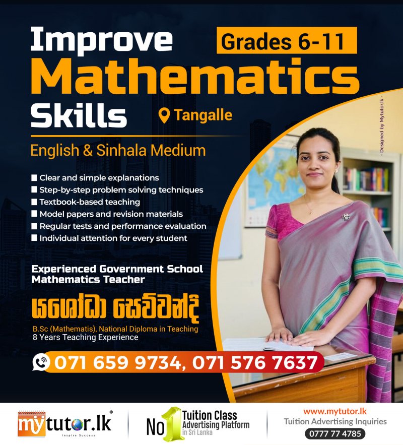 Experienced Government School Mathematics Teacher | Grade 6–11 | English & Sinhala Medium | Tangalle | Home & Group Classes